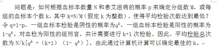 某医院对一群人进行一项关于艾滋病的抗-HIV1/2检验。如果对每个人的血标本单独检验,既费时,成本又高。如果采用“分组混合血标本检验”,可以节省成本和时间。具体做法如下:假定采集到N个血标本,把每个血标本平分成两份,一份留做备用。另一份平均分成M组,将每组的血标本混合在一起进行一次性检验。如果发现某组检测为阳性,再用该组相关人的备用血标本进行逐个检验,筛查出艾滋病患者。