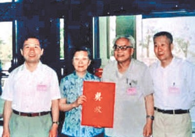 林群(右一)和吴文俊夫妇(右二、右三)合影。