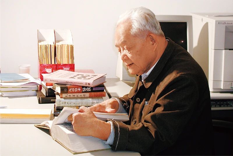 图为吴文俊在办公室里阅读书籍(资料照片)。新华社发