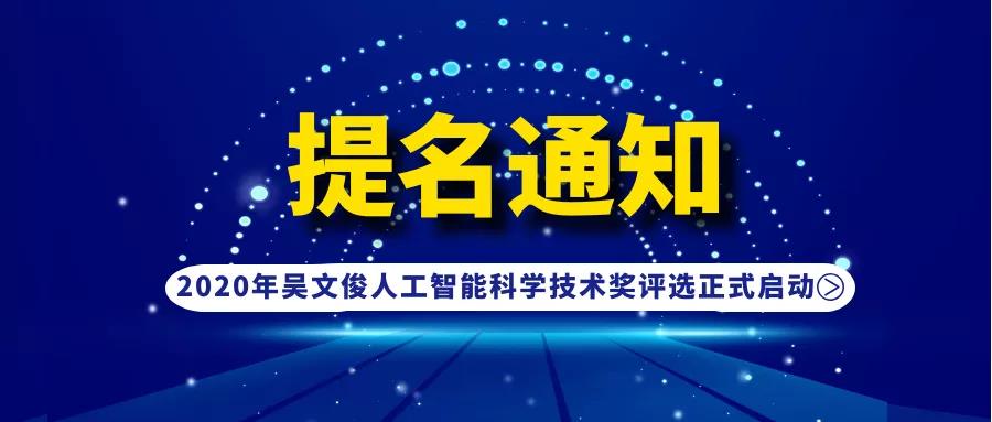 根据《关于深化科技奖励制度改革的方案》(国办函﹝2017﹞55号)的精神,按照《吴文俊人工智能科学技术奖励条例》及其实施细则、《吴文俊人工智能科学技术奖提名制实施办法(试行)》(附件1)等有关规定,为全面实施创新驱动发展战略,激励和引导广大科研人员大力弘扬科学家精神,通过推荐选拔优秀的智能科学技术成果和产业化项目,切实调动我国智能科技领军人才的积极性和创造性,大力提升智能科学技术与产业化应用发展水平,发挥人工智能技术在各行业领域的赋能作用,奖励在人工智能科学研究活动中做出突出贡献的单位和个人,更好的为广大智能科技工作者和全体会员服务,中国人工智能学会2020年度“吴文俊人工智能科学技术奖”[国科奖社证字第0218号]提名工作已正式启动。“吴文俊人工智能科学技术奖”是我国智能科学技术领域最高奖,每年设有200万元人民币奖金,具备提名、推荐国家科学技术奖资格。请各地方人工智能学会(联盟)、高校科研院(处)及人工智能研究院(学院);学会各分支机构、团体会员单位和同领域学者专家加大宣传力度,认真组织提名工作,现将有关事项通知如下。