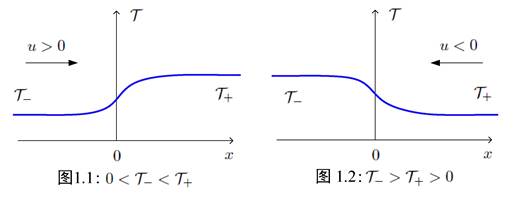 著名的不可压缩Navier-Stokes方程形式上为可压缩Navier-Stokes方程的低马赫数(Mach number)极限,因此低马赫数极限是非常重要的数学问题。关于低马赫数极限的研究有很多结果,如2006年法国数学家T. Alazard基于声波分析,证明了可压缩Navier- Stokes方程一般初值情形的低马赫数学极限。注意到,之前所有的工作均要求无穷远处的状态是同一个常数。最近我们对于无穷远处状态为两个不同常数时,证明了一维可压缩Navier-Stokes方程的低马赫数极限。特别地,除了上面到的声波,我们发现了新的波现象,即扩散波。该波与著名的热蠕流动(流体从低温部分流向高温部分)紧密相关(见图1)。 实际上,我们构造了极限方程的一个扩散波解,该扩散波解的速度与温度的导数成正比(即热蠕流动)。首次从数学上证明非等熵可压Navier-Stokes方程的解的速度与温度的导数成正比,即可压Navier-Stokes方程的解在一定条件下有热蠕流动现象。研究成果发表在Advances in Mathematics., 319 (2017), 348-395。