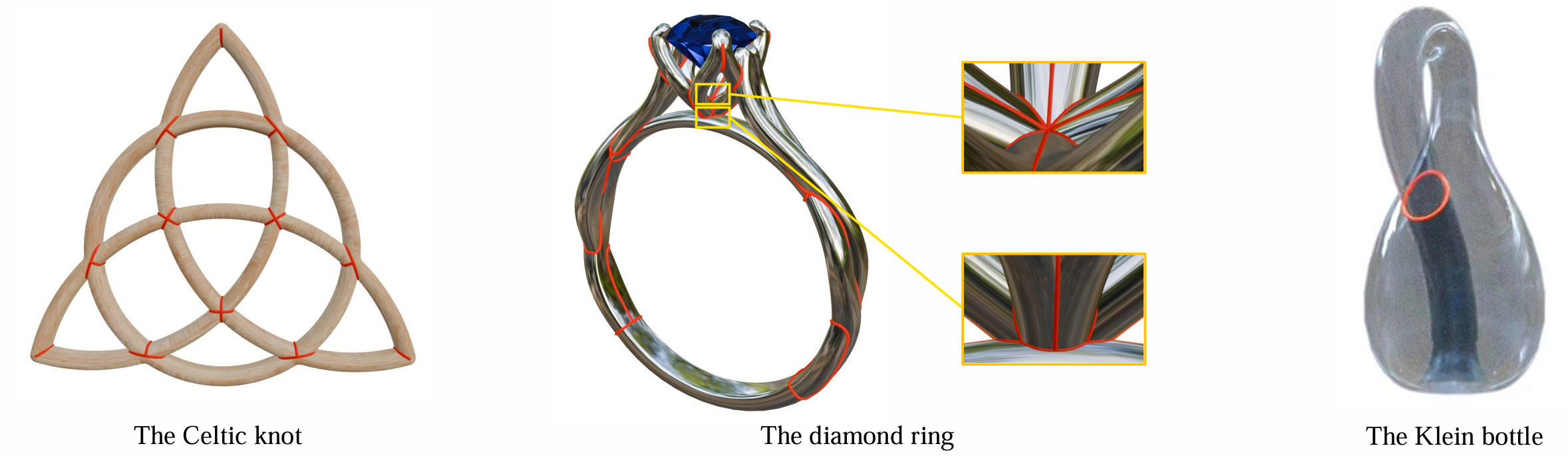 近日,数学机械化实验室贾晓红研究员、李凯博士与中国科学技术大学陈发来教授合作攻克了该问题,提出曲面自交的代数判别式和自交轨迹的快速保拓扑计算方法,NURBS曲面自交判定平均效率达到10-4秒级,并在挑战性临界拓扑的计算正确性上优于商业引擎ACIS。相关成果被计算机图形学顶级期刊ACM Transactions on Graphics接收发表。
