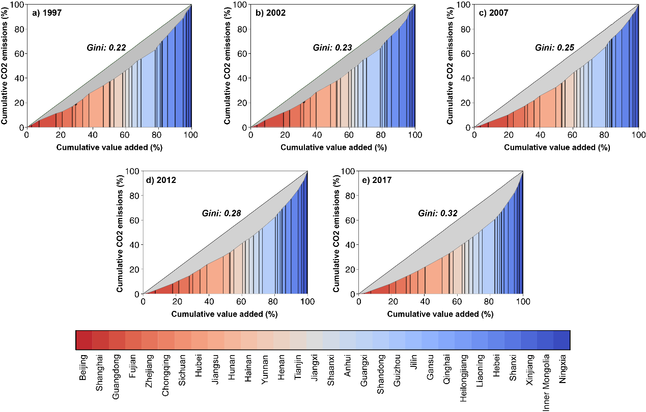 图2. 1997—2017年我国地区碳排放相对于增加值的基尼系数