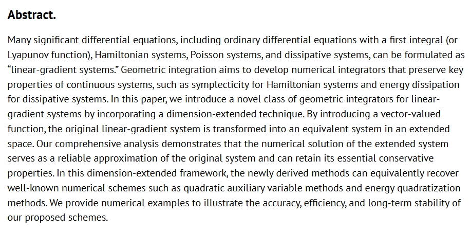 线性梯度系统的一类几何数值积分方法(孙雅娟与合作者)