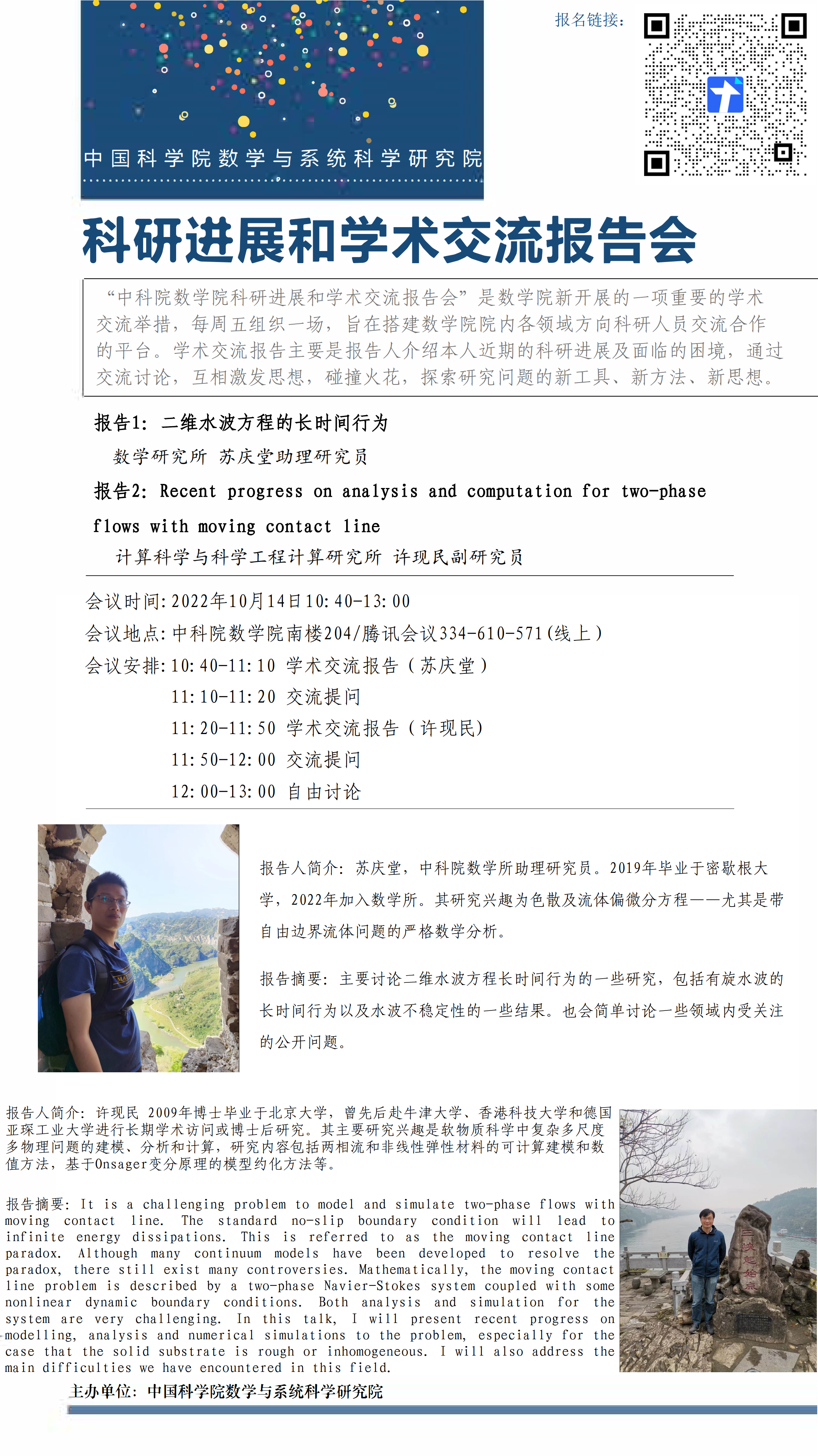 【2022.10.14-10.14 北京&腾讯会议】 数学院科研进展和学术交流报告会(第八期)