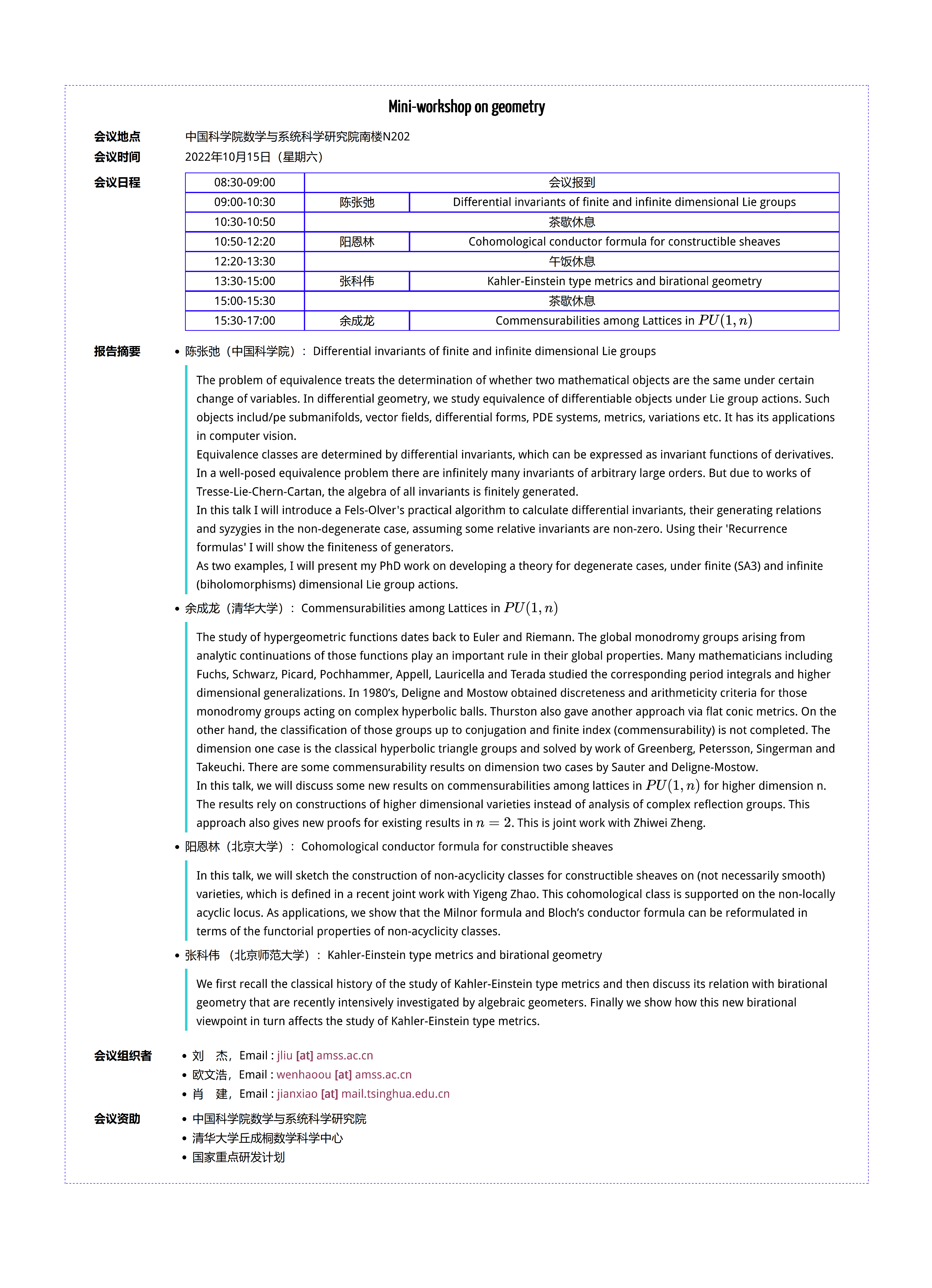【2022.10.15-10.15 北京】 Mini-workshop on geometry