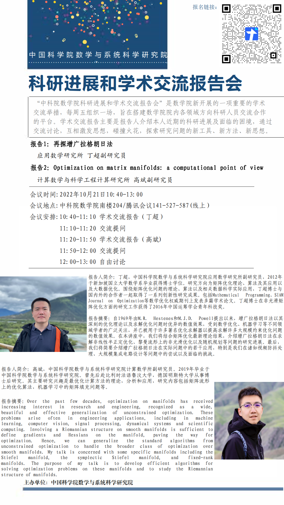 【2022.10.21-10.21 北京&腾讯会议】 数学院科研进展和学术交流报告会(第九期)