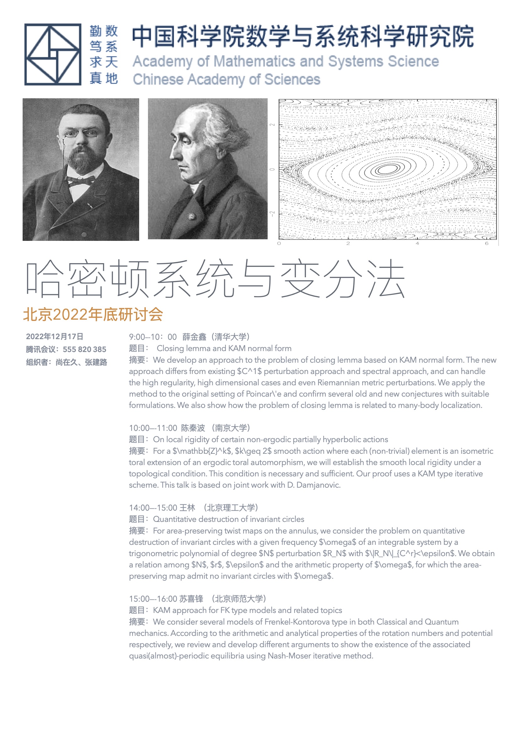 【2022.12.17-12.17 腾讯会议】 2022年12月17日 哈密顿系统与变分法 北京2022年底研讨会
