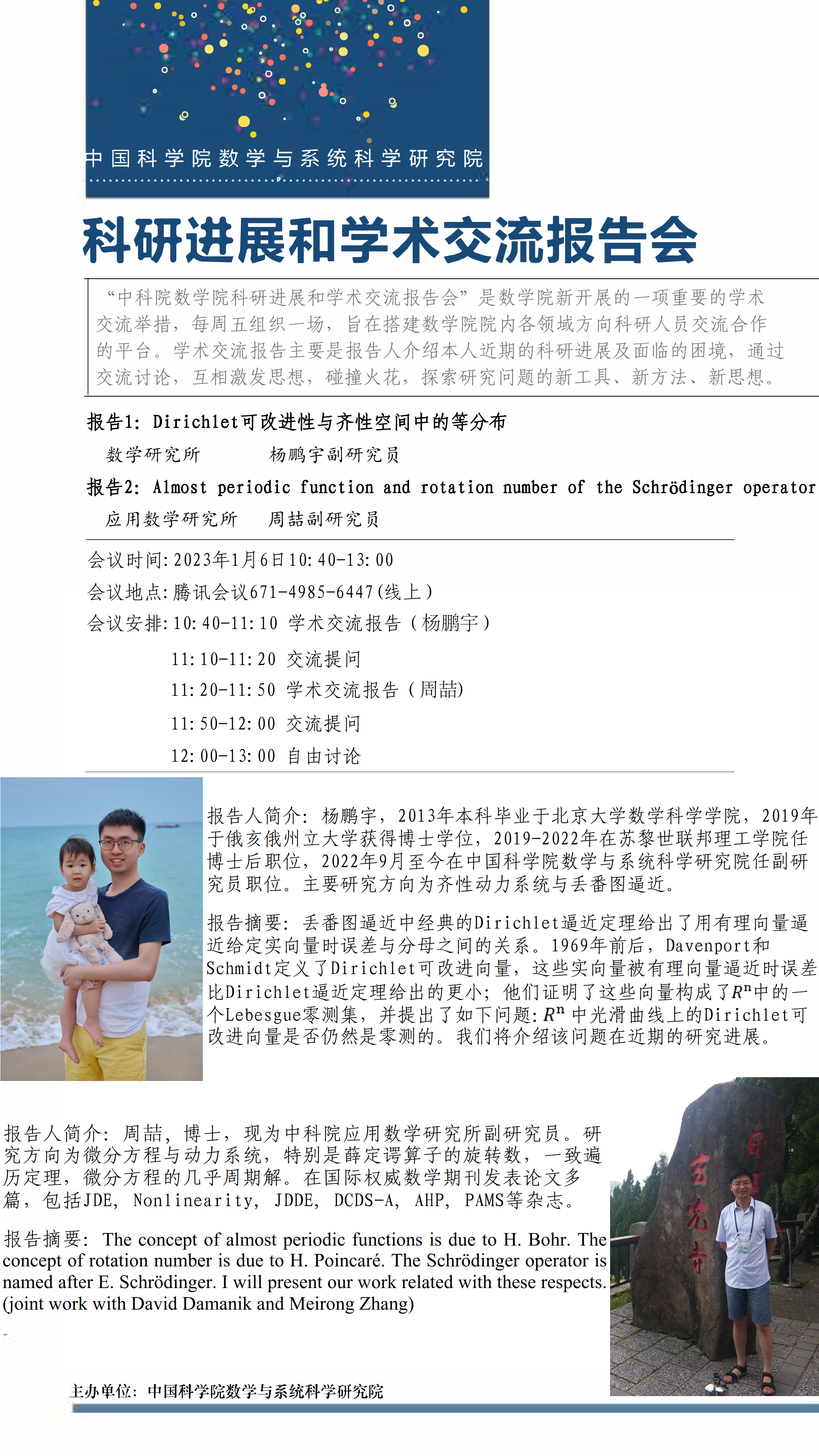 【2023.01.06-01.06 腾讯会议】 数学院科研进展和学术交流报告会(第二十期)