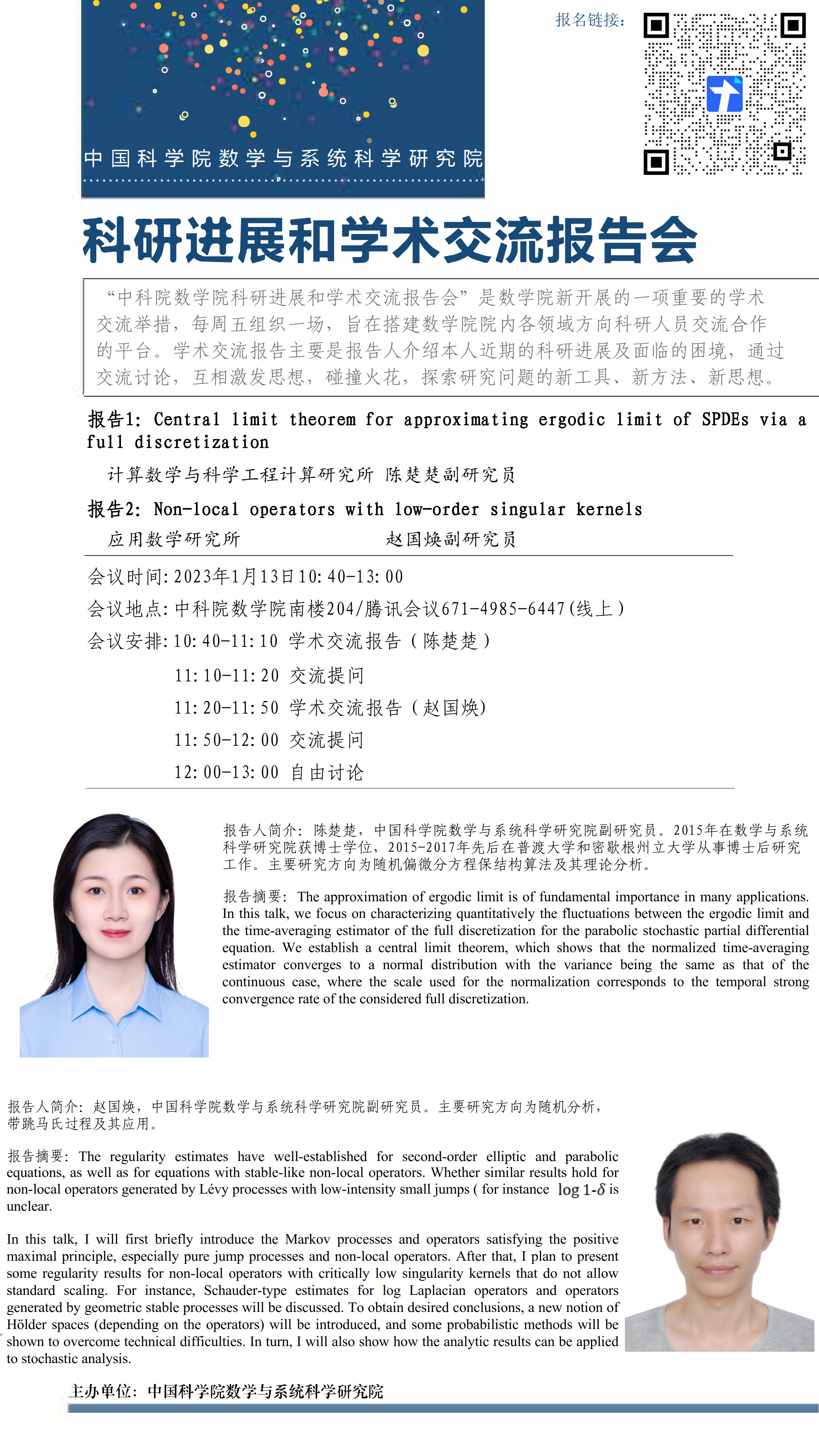 【2023.01.13-01.13 北京&腾讯会议】 数学院科研进展和学术交流报告会(第二十一期)