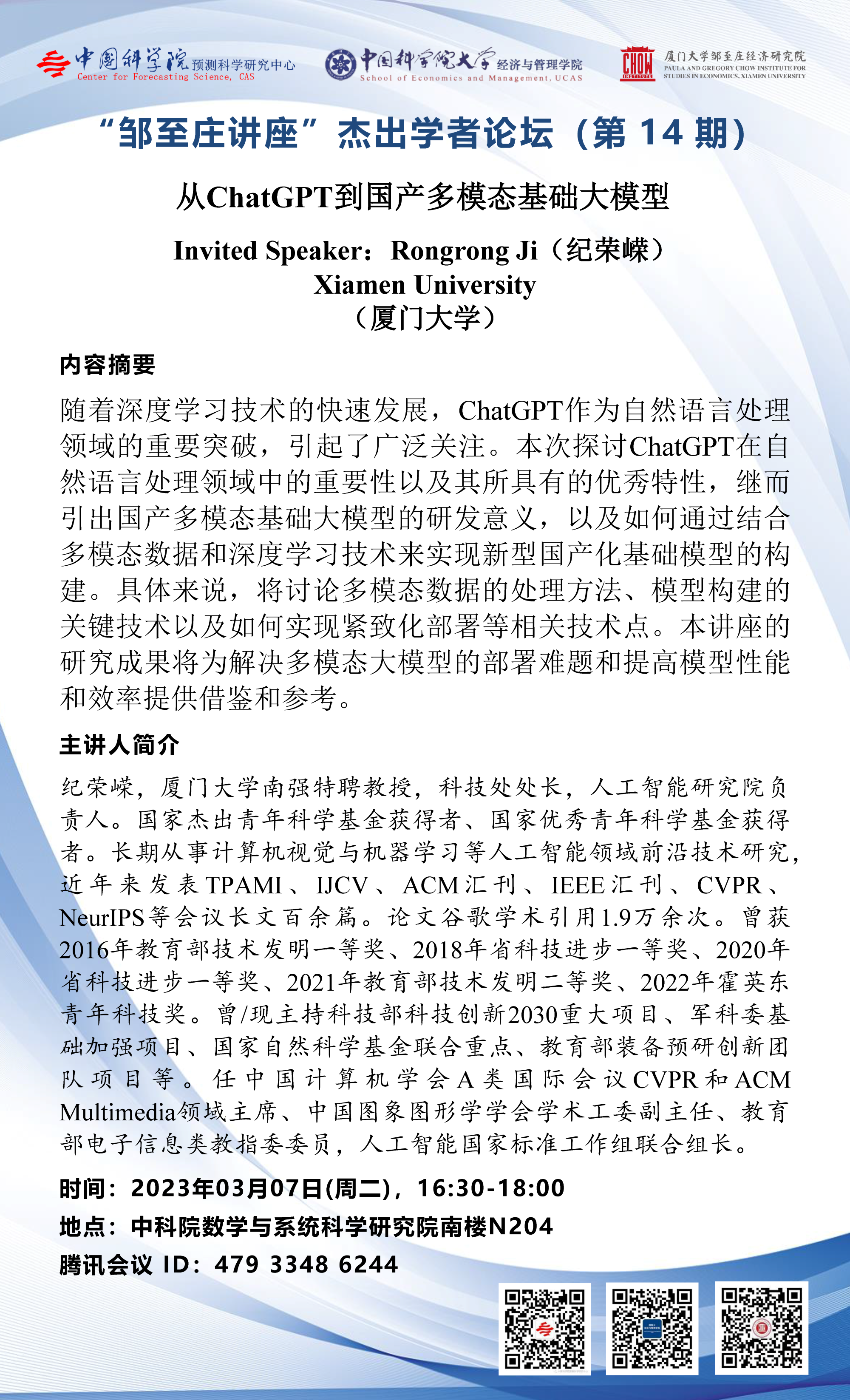 【2023.03.07-03.07 北京&腾讯会议】 “邹至庄讲座”杰出学者论坛(第14期)