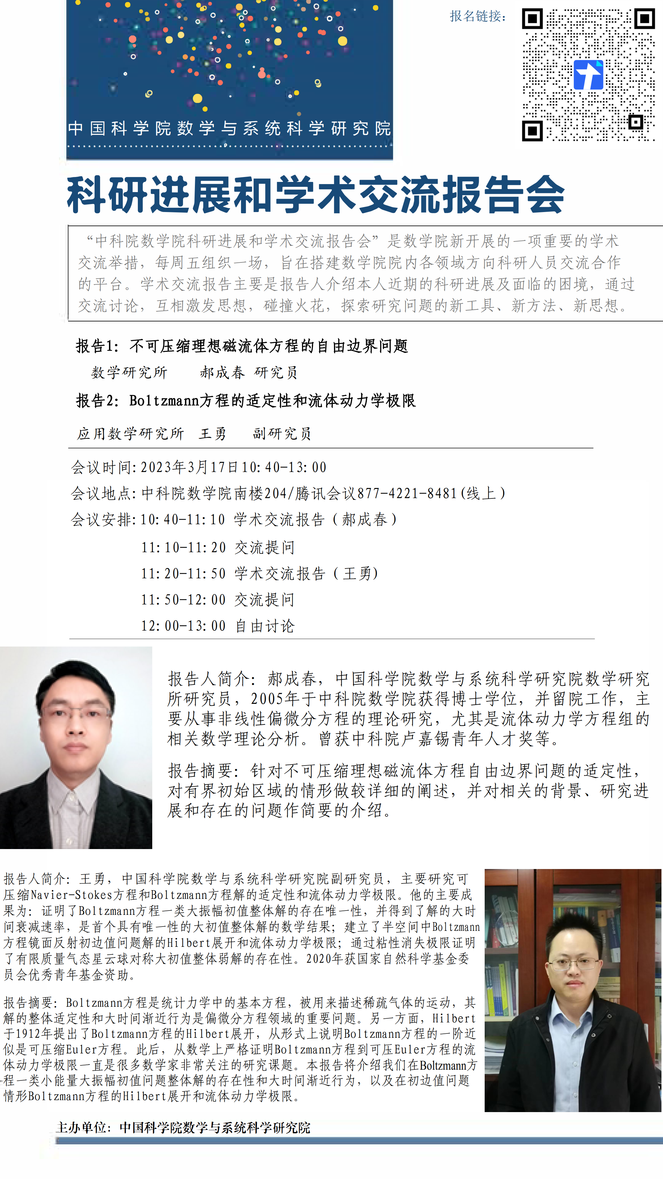 【2023.03.17-03.17 北京&腾讯会议】 数学院科研进展和学术交流报告会(第二十六期)