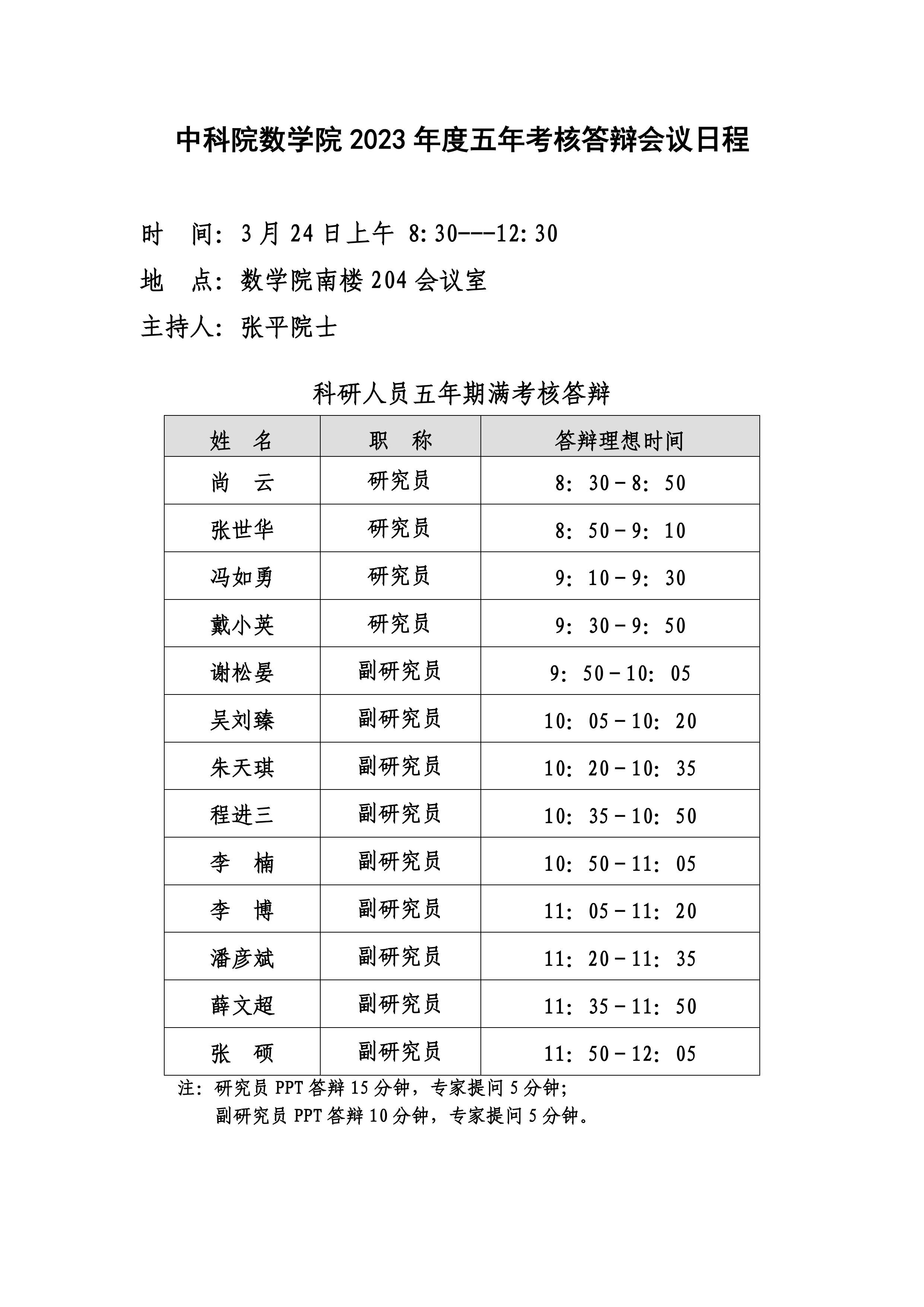 【2023.03.24-03.24 北京】 中科院数学院2023年度五年考核答辩会议
