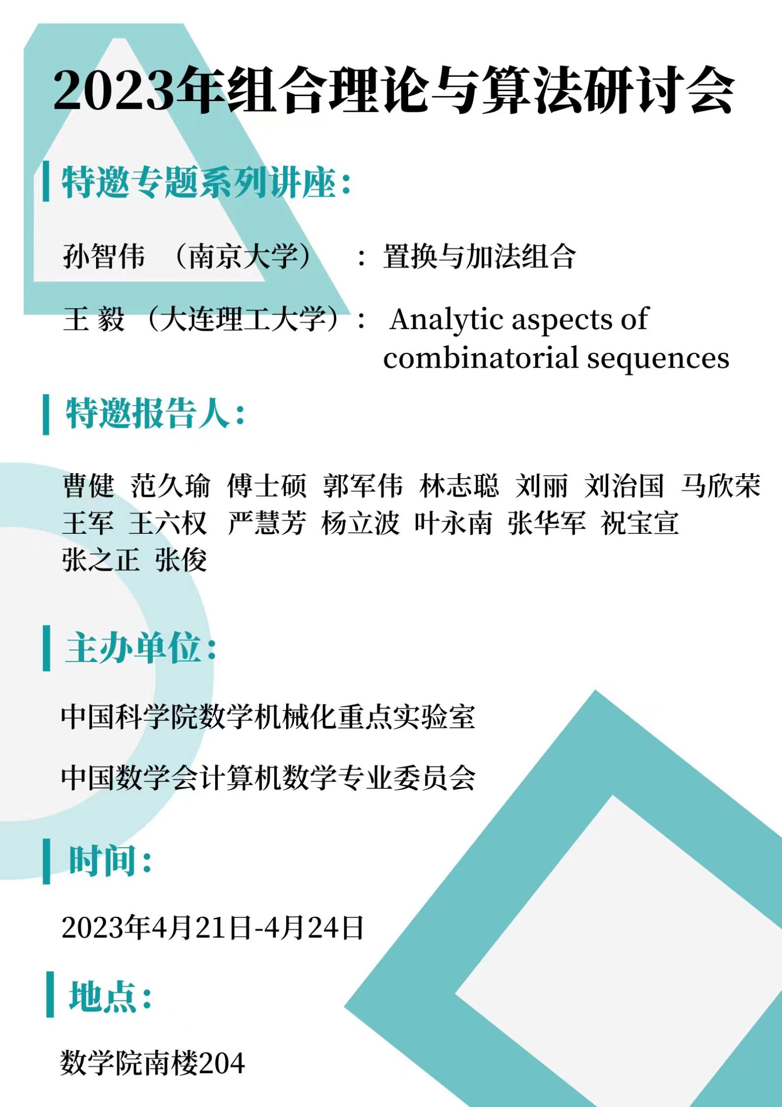 【2023.04.21-04.24 北京】2023年组合理论与算法研讨会
