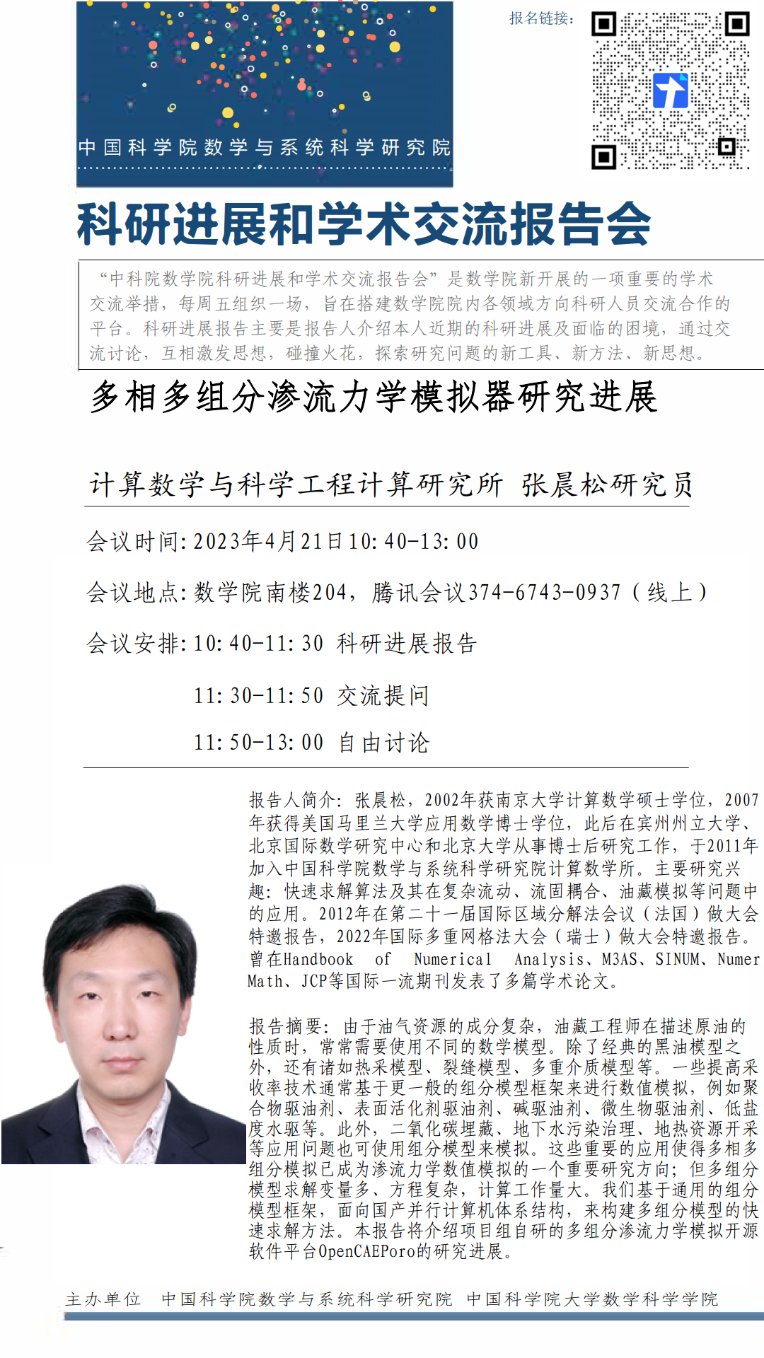 【2023.04.21-04.21 北京&腾讯会议】 数学院科研进展和学术交流报告会(第三十期)