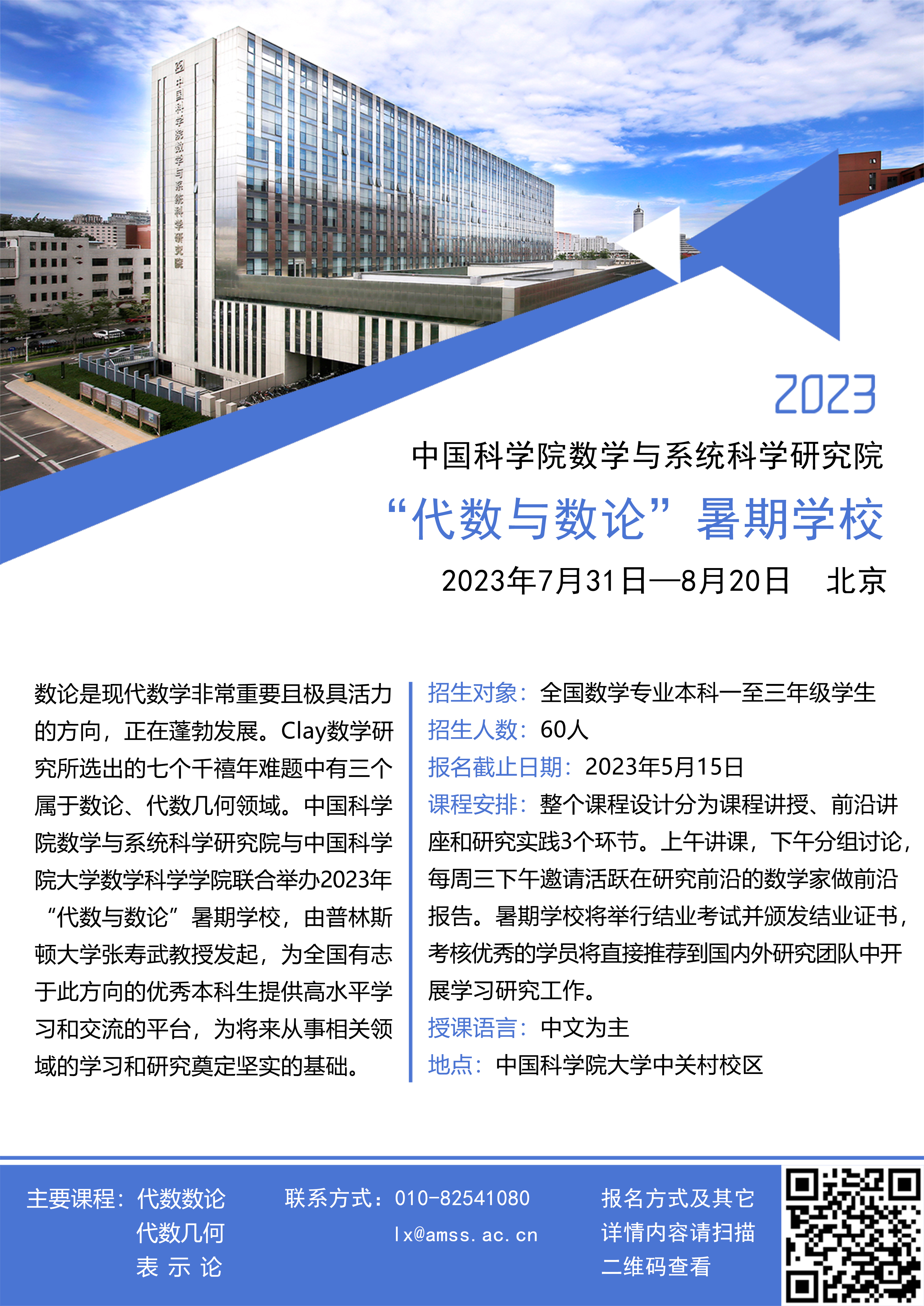 【2023.07.31-08.20 北京】"代数与数论"暑期学校