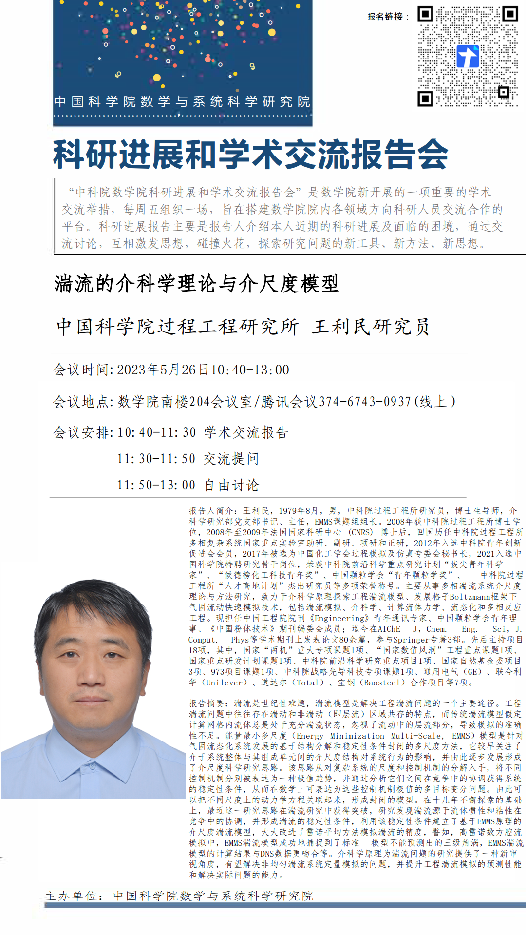 【2023.05.26-05.26 北京&腾讯会议】 数学院科研进展和学术交流报告会(第三十四期)