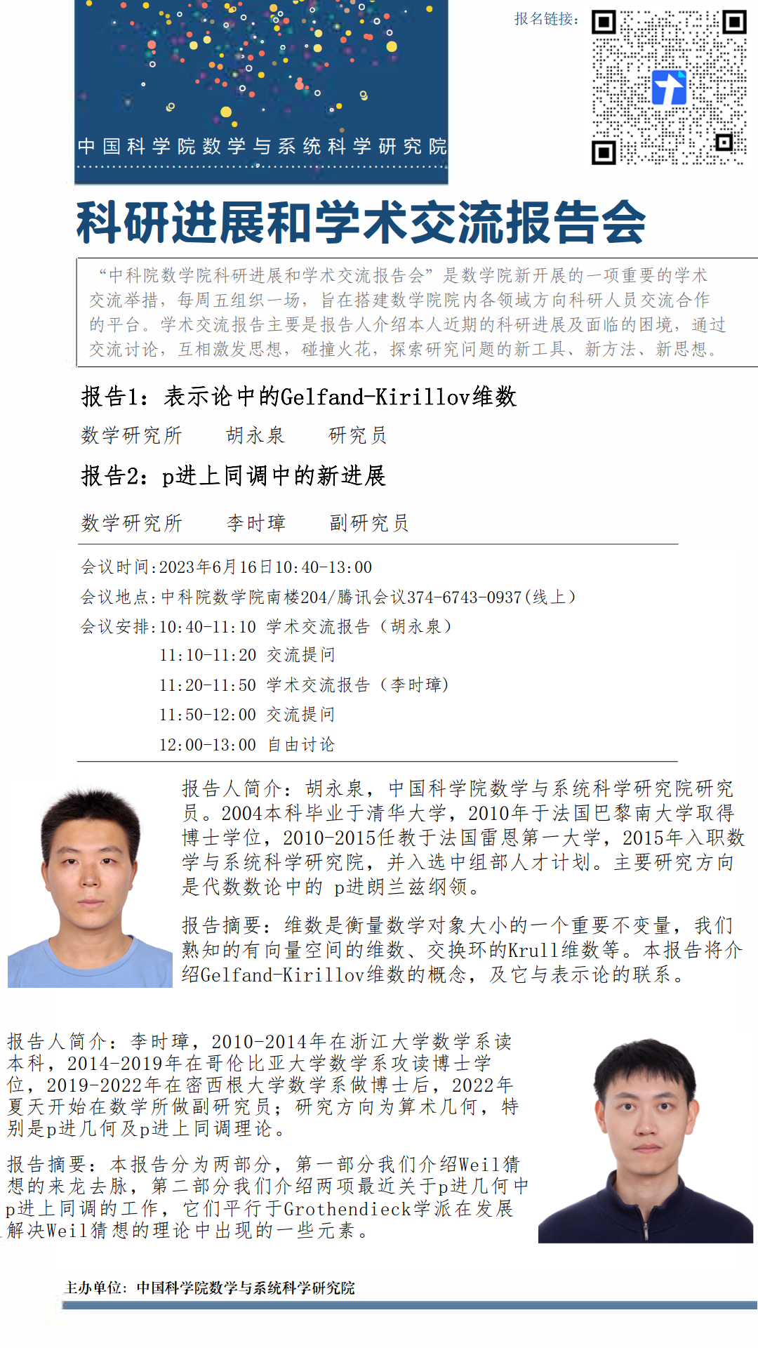 【2023.06.16-06.16 北京&腾讯会议】 数学院科研进展和学术交流报告会(第三十七期)