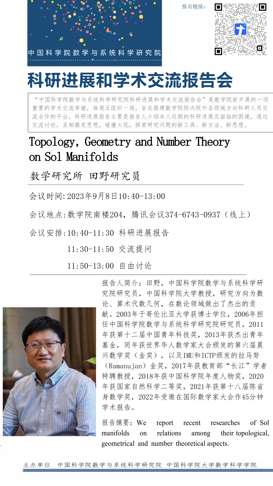 【2023.09.08-09.08 北京&腾讯会议】 数学院科研进展和学术交流报告会(第四十期)