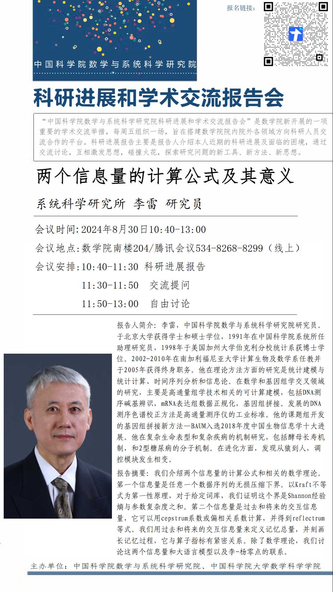 【2024.08.30-08.30 北京&腾讯会议】数学院科研进展和学术交流报告会(第七十八期)