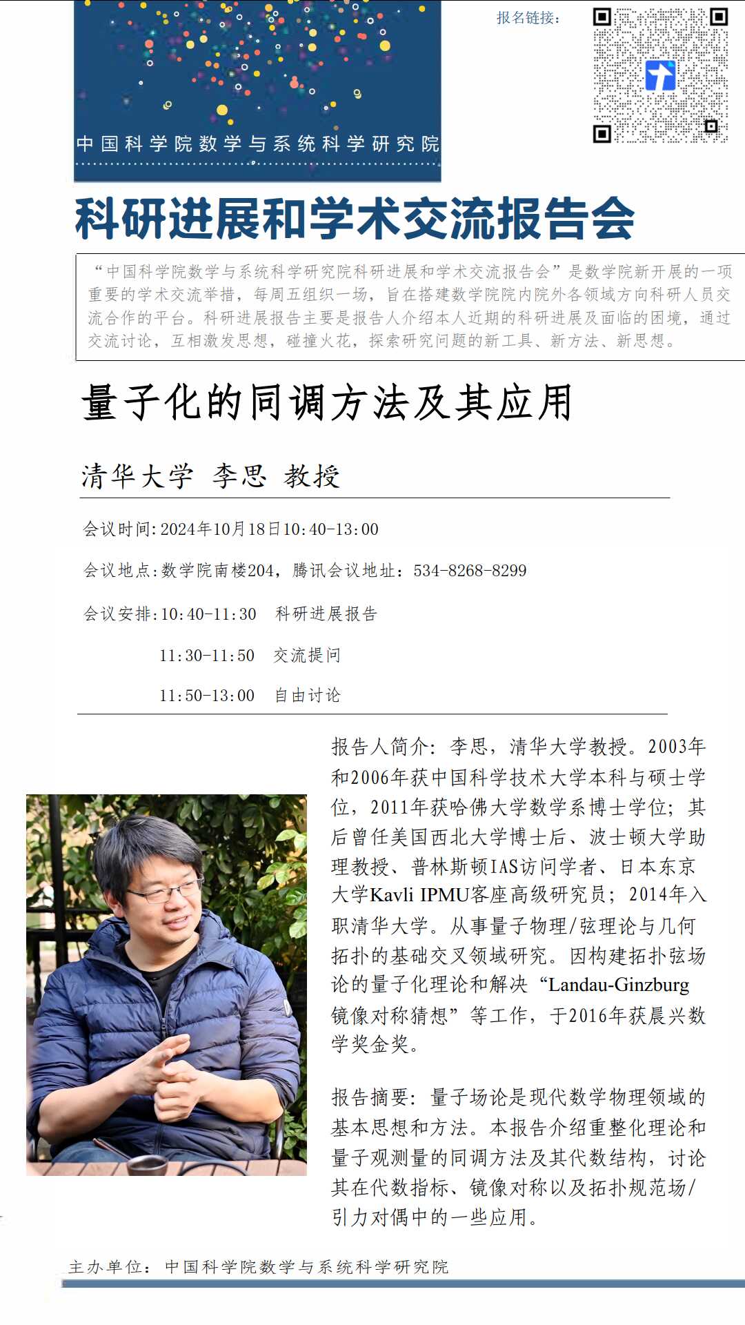 【2024.10.18-10.18 北京&腾讯会议】数学院科研进展和学术交流报告会(第八十四期)