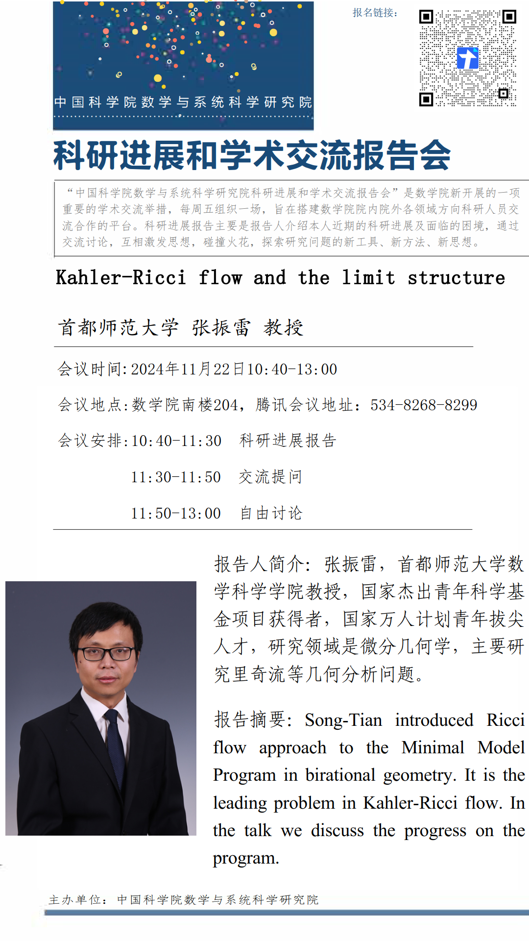 【2024.11.22-11.22 北京&腾讯会议】数学院科研进展和学术交流报告会(第八十八期)