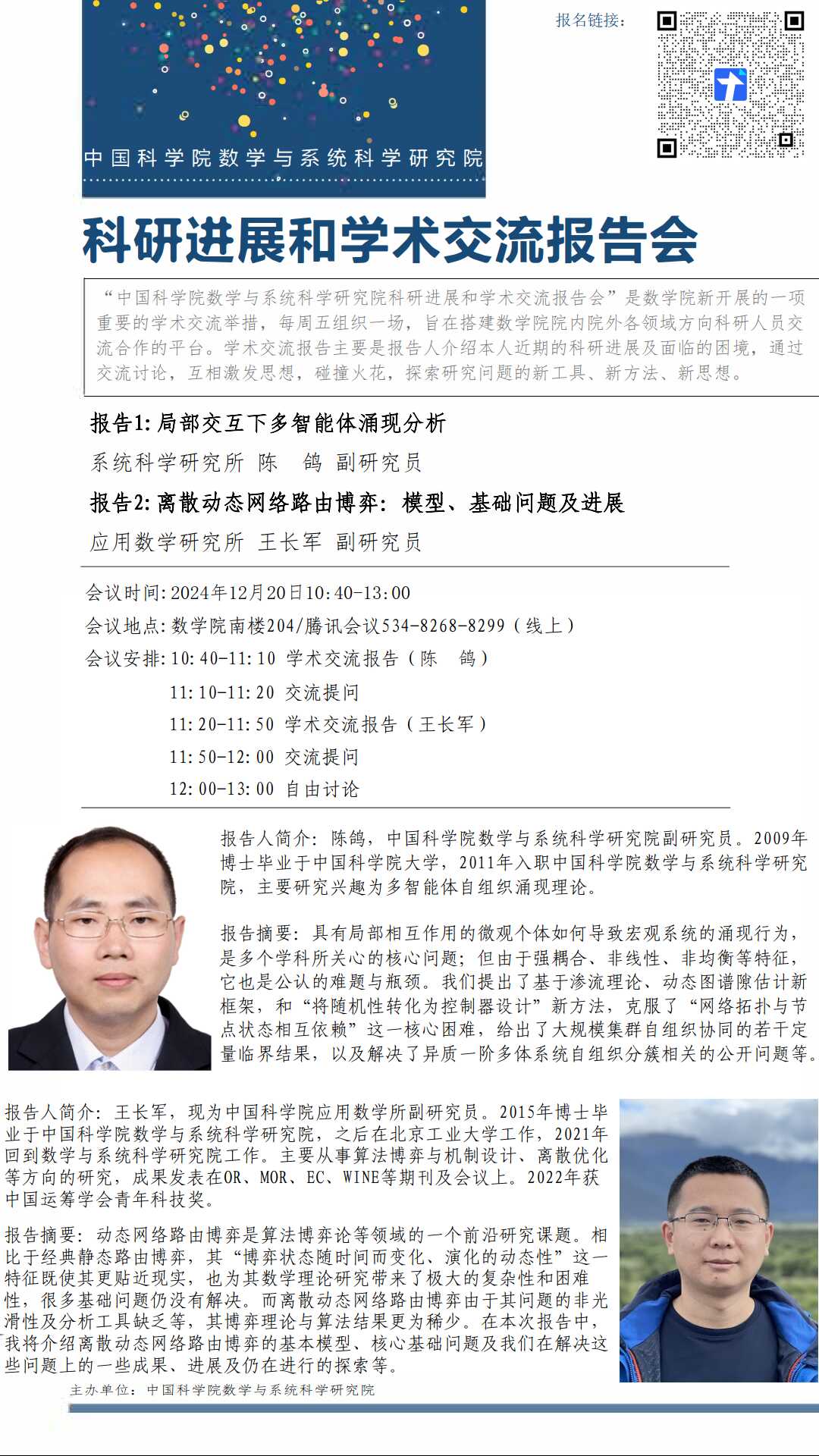 【2024.12.20-12.20 北京&腾讯会议】数学院科研进展和学术交流报告会(第九十二期)