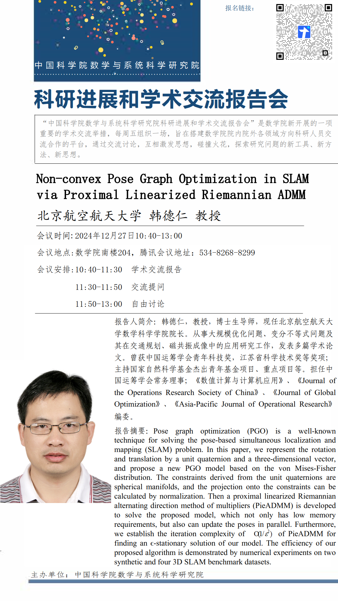 【2024.12.27-12.27 北京&腾讯会议】数学院科研进展和学术交流报告会(第九十三期)