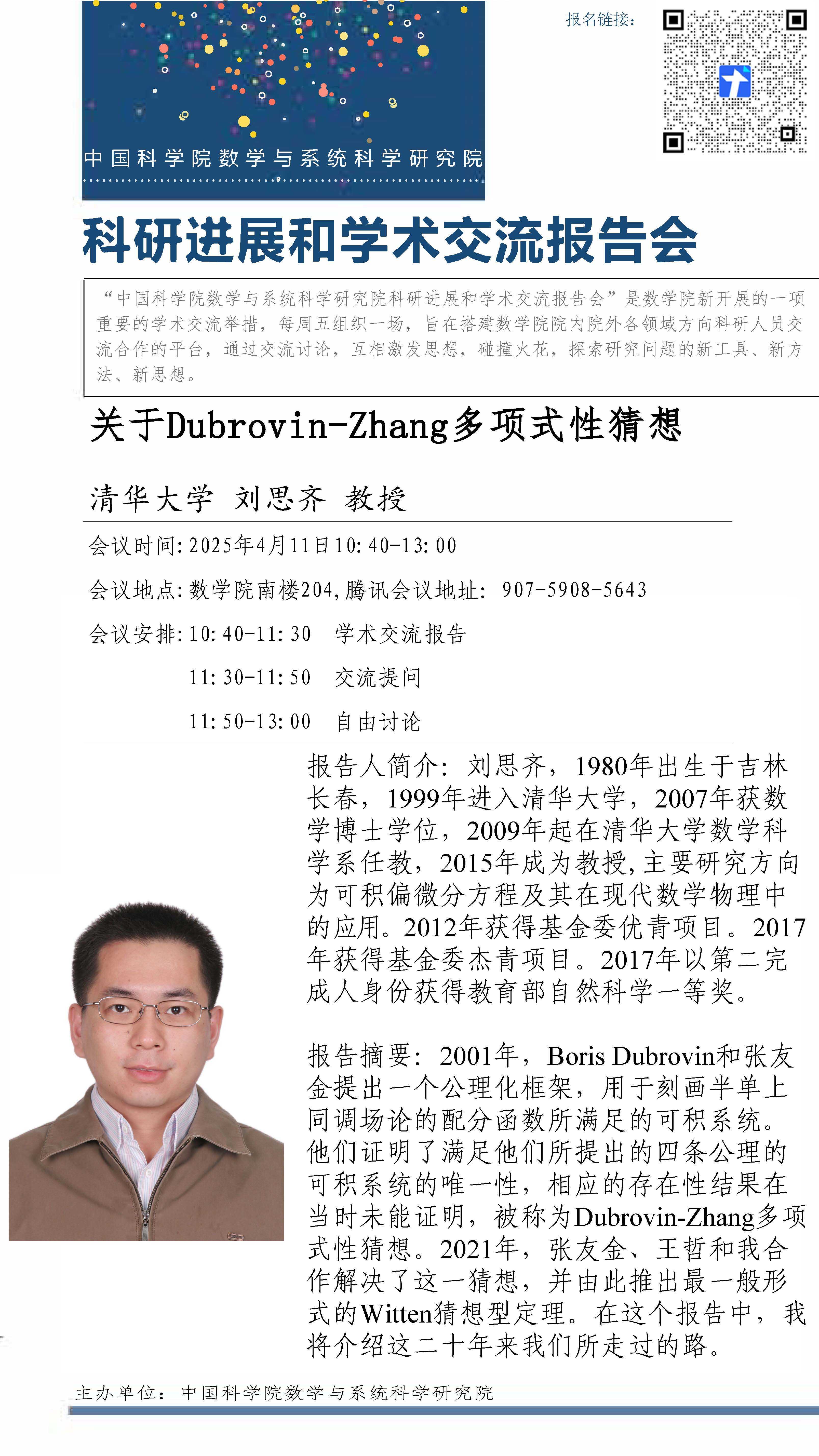 【2025.04.11-04.11 北京&腾讯会议】数学院科研进展和学术交流报告会(第一百零二期)