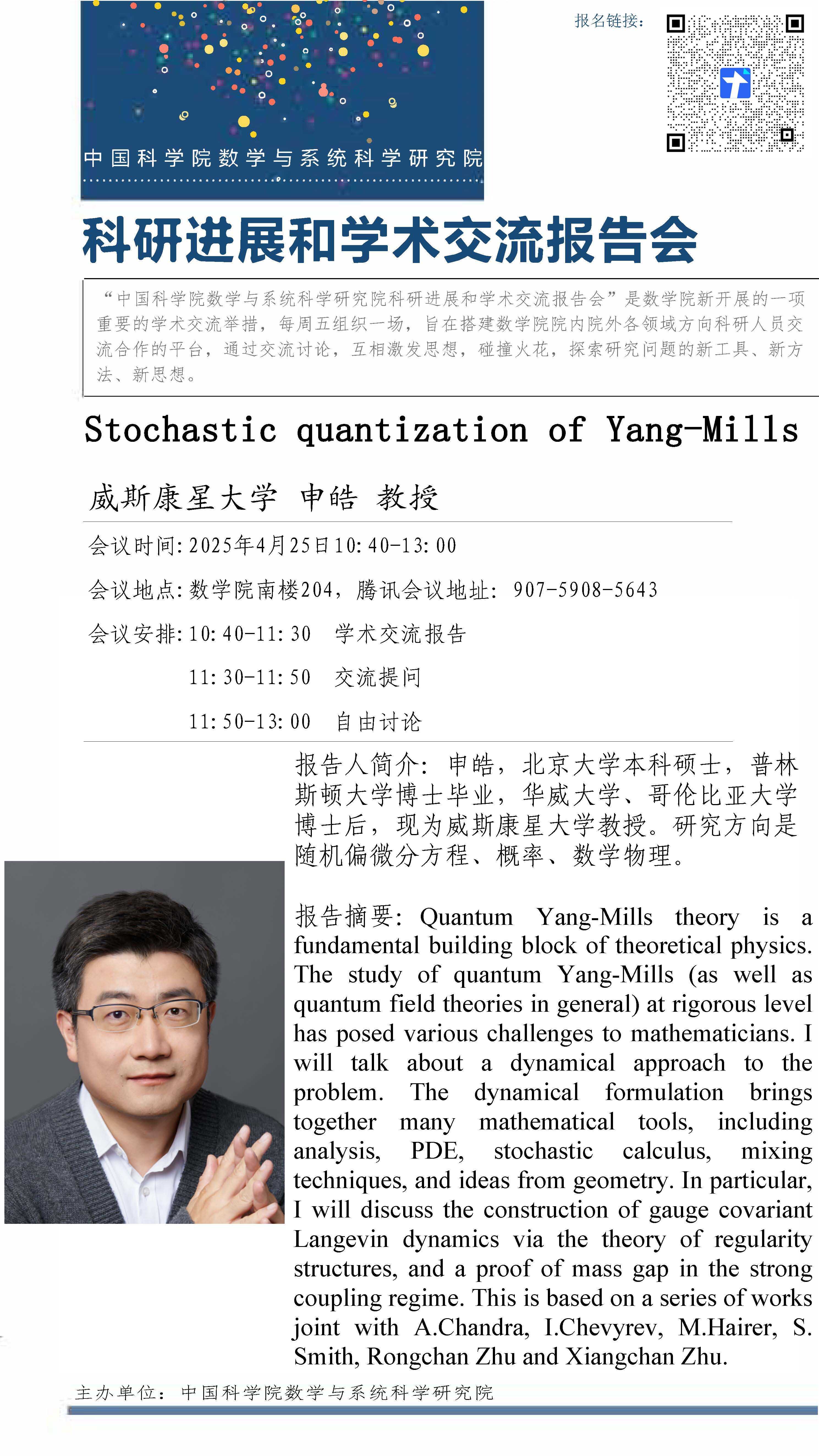 【2025.04.25-04.25 北京&腾讯会议】数学院科研进展和学术交流报告会(第一百零五期)