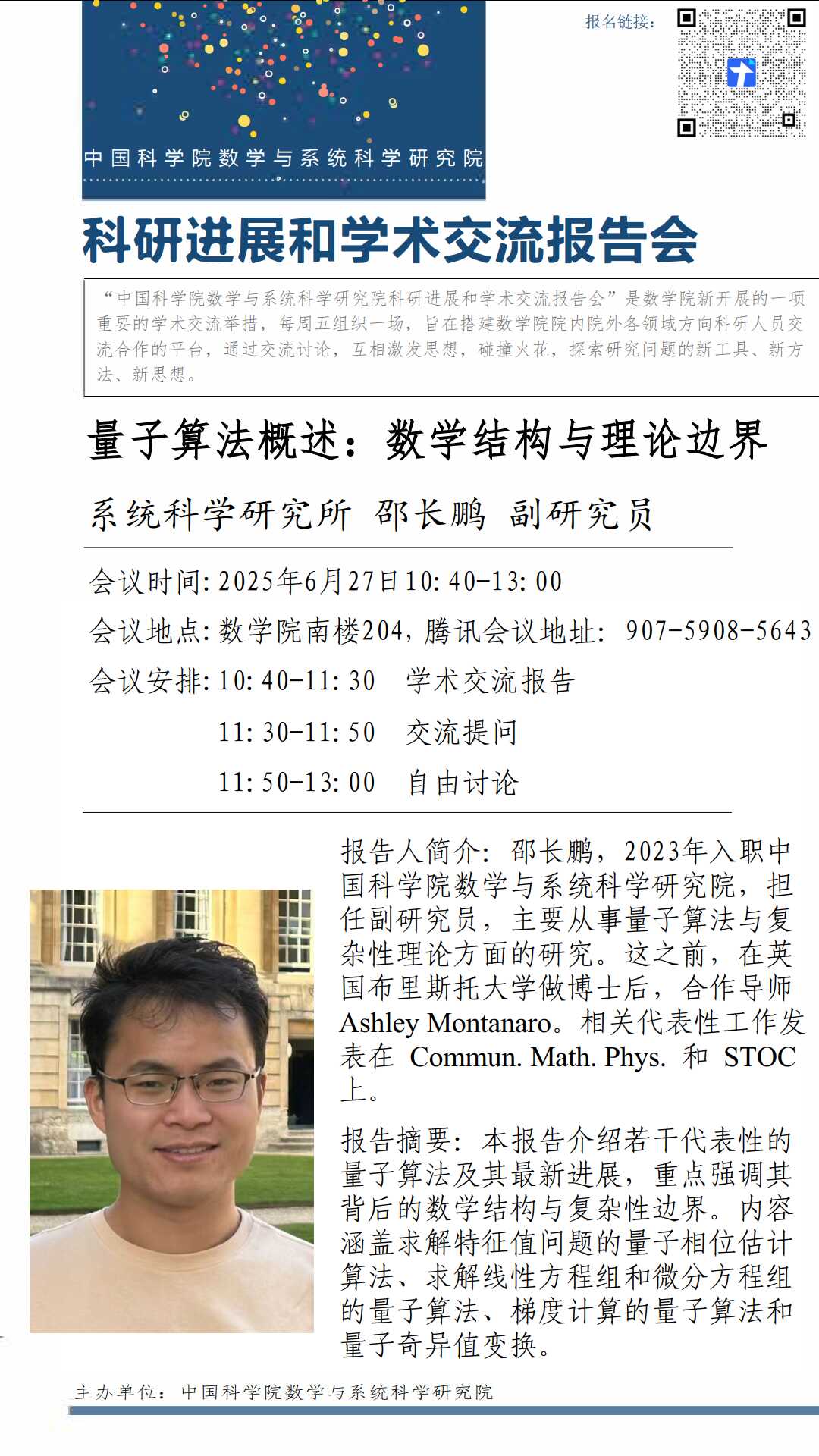 【2025.06.27-06.27 北京&腾讯会议】数学院科研进展和学术交流报告会(第一百一十四期)