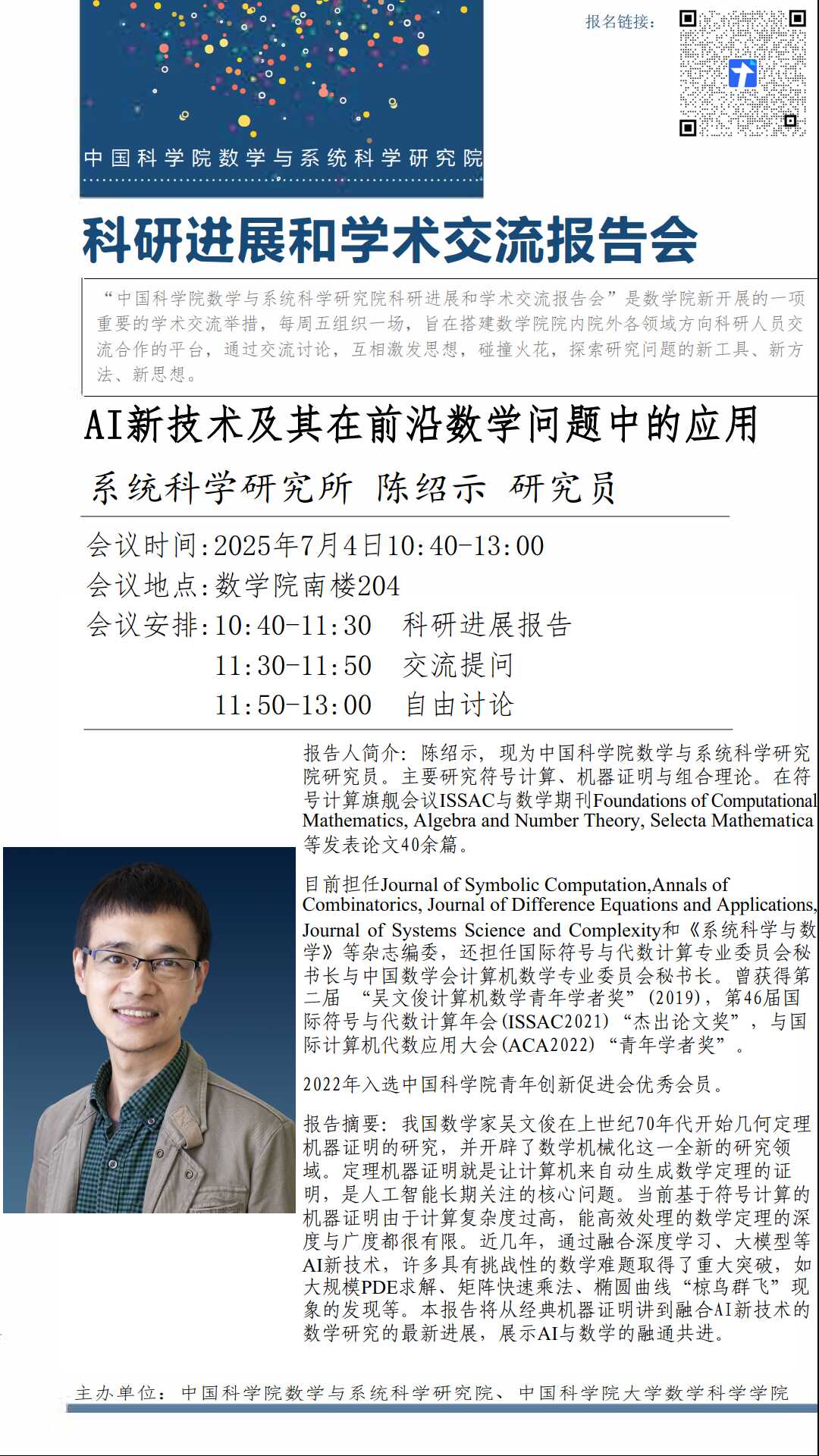 【2025.07.04-07.04 北京】数学院科研进展和学术交流报告会(第一百一十五期)