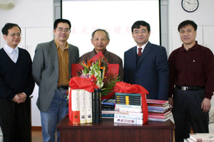 3月15日上午,简单而隆重的王元院士赠书仪式在813会议室举行。郭雷院长、王跃飞书记、陈敏副院长、周向宇所长以及相关职能部门的负责人参加了仪式。王跃飞书记首先介绍了王元院士的学术贡献和此次赠书的背景,他称道王元院士在做人和做学问上都是青年学者的楷模。郭雷院士向王元院士敬赠了捐赠证书,他感谢王元院士多年来为研究院各项工作做出的重要贡献,并表示将努力做好出版院士文集的工作。