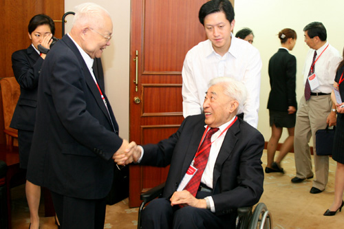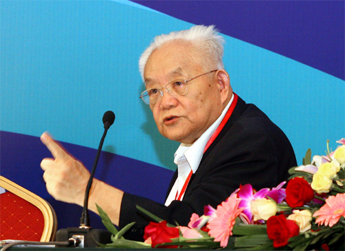 张恭庆院士、马志明院士、胡国定先生、周毓麟院士、王梓坤院士、林群院士、李邦河院士、张继平教授、文志英教授、陈永川教授、范更华教授等二十余位数学界代表先后发言。张恭庆院士告诉大家,国际上认为几何机器证明的研究可以截然的按照吴先生来划分,也就是前吴时期和后吴时期,这说明吴先生的工作是划时代的。张恭庆院士指出,吴文俊先生建立的“吴方法”是中国自主创新的成果,他的成就是中华民族的光荣,吴文俊先生是中国数学家的骄傲。新当选的国际数学联盟副主席马志明也深深地体会到,中国数学家已经在世界数学界显示出自己的力量。大家在讲话中纷纷表示,吴文俊先生此次获奖极大振奋了我国数学界的士气,全国数学界应该以吴文俊先生为榜样,为中国数学的复兴努力奋斗。
