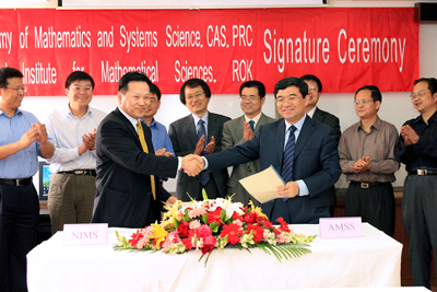 中科院数学与系统科学研究院和韩国国立数学研究所均是国立数学研究机构,此次联合备忘录的签署,对中韩在数学领域方面的合作具有重要意义。参加此次会谈的还有院长助理洪佳林研究员与数学所周向宇所长、应用数学所巩馥洲所长、系统科学所高小山所长和计算数学所陈志明所长以及研究院相关职能部门的同志。
