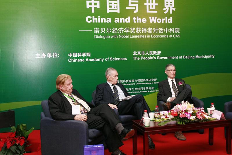 9月13日上午,中科院基础科学园区思源楼一层报告厅内座无虚席。作为“2007诺贝尔奖获得者北京论坛”的分论坛,这里迎来了三位诺贝尔经济学奖大师:埃德蒙德·菲尔普斯、托马斯·谢林和罗伯特·蒙代尔。他们就“中国与世界的经济与形势”的主题为现场听众做了精彩的学术报告,并与听众展开了对话。三位诺贝尔经济学奖大师齐聚这里,畅谈中国及世界的经济形势,这在中科院下属研究所的国际学术交流活动中尚属首次,在国内高校也未曾闻及。因此,该分论坛也得到了新华社、中央电视台、北京电视台等多家媒体的广泛关注。