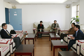 会谈中,郭雷院长对研究院的发展历史、主要研究方向进行了简要介绍。周永祖教授表示希望与研究院在联合培养学生和学术交流互访方面加强合作,这一意愿得到双方肯定,有关合作具体事宜将有待进一步磋商。会谈结束后,计算数学所所长陈志明研究员等陪同周永祖教授参观了中科院数学机械化重点实验室和研究院图书馆等。