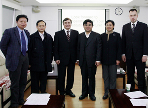 座谈由汪寿阳副院长主持,郭雷院长简要地介绍了研究院历史、主要研究方向等概况, KHOMICH主席也对RFBR的基金申请和资助情况以及近年来对中俄学术交流活动的支持等情况也作了介绍。自1994年以来,中国国家自然科学基金委员会一直与俄罗斯基础研究基金会保持着良好的国际合作关系,双方共同支持合作研究项目。KHOMICH主席表示,俄罗斯基础研究基金会每年有较大比例的经费是用来支持数学学科方向的研究项目和国际合作项目,对数学方向的申请项目有相对的倾斜性,表示对中俄双方共同申请的研讨会将可给予资助。
