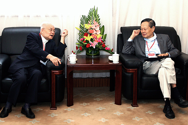 吴文俊先生与杨振宁教授在获奖庆祝会上