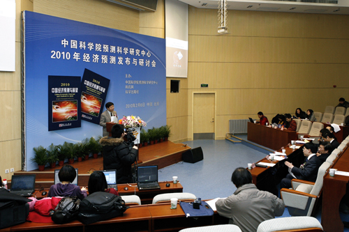 2010年2月6日下午14:00-17:00,由中国科学院预测科学研究中心、和讯网和科学出版社联合举办的“2010年中国经济预测发布与研讨会”在数学院思源楼一层报告厅顺利召开。中心主任汪寿阳教授主持了会议,中心学术委员会副主任陈锡康教授、清华大学中国与世界经济研究中心主任李稻葵教授、国家发展改革委员会宏观经济研究院副院长陈东琪教授、中国社会科学院数量经济与计量经济研究所副所长李雪松教授等作为特邀嘉宾出席了会议。