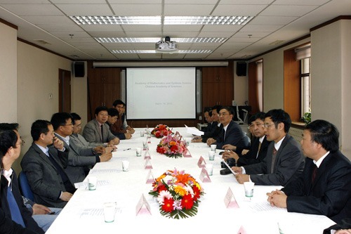 3月19日下午,越南科学院副院长阮停功教授等一行九人在中国科学院国际合作局亚非处工作人员的陪同下,来数学院进行考察访问。数学院王跃飞书记、汪寿阳副院长、洪佳林副院长、潘建中院长助理、数学所周向宇所长、应用数学所胡晓东副所长、系统所高小山所长和计算数学所周爱辉副所长会见了代表团并参加了座谈会。