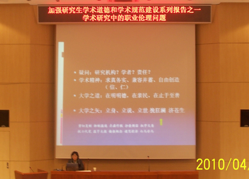 首先,邱吉教授提出一个问题:为什么我们需要加强学术研究中的道德建设?通过展示大量事例、图片和统计数据,邱教授向研究生们讲述了学术造假和学术不端行为给社会和个人带来的危害,指出为了提升学者的学术水平和研究能力,培养科技创新型人才,营造良好的学术环境,我们需要加强学术道德和建立学术规范。邱教授特别强调了求真务实,兼容并蓄,自由创造的学术精神对于年轻科技工作者成长的重要性。