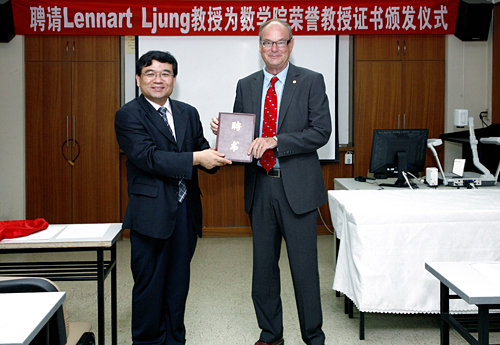 部分院所领导、科研人员、学生代表60余人出席了证书颁发仪式。仪式结束后,Ljung教授应邀在永利作了学术报告,向与会者介绍了他的最新研究成果。次日,Ljung教授在北京召开的“中国控制会议”上又作了“非线性系统辨识方法”的大会特邀报告。