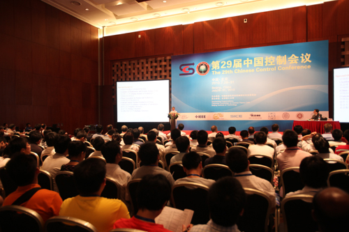 在7月29日上午隆重举行的开幕式上,中国科协书记处书记冯长根教授、中国自动化学会理事长戴汝为院士、北京理工大学副校长赵长禄教授、大会总主席陈翰馥院士分别致辞,向大会的召开表示热烈祝贺。在29日控制理论专业委员会举行的晚宴上,国际自动控制联合会执委、中国自动化学会副理事长、数学院院长郭雷院士做了主题讲话。他首先代表控制理论委员会的挂靠单位——数学院,对长期以来给予控制理论专业委员会和中国控制会议支持和帮助的各位委员和朋友表示感谢。郭雷院士回顾了从1979年首次召开中国控制会议到如今在人员规模、学术水平、国际影响等方面取得的巨大发展,并总结了六大原因:1)随着改革开放30多年发展,中国在经济、社会、科技等方面全面发展了,综合国力大大提升了,有了把学术会议越办越好的客观条件; 2)系统与控制领域有着强大的生命力和无穷的魅力,在理论上有丰富的命题,在实际中有广泛的应用,持续吸引着大批青年人;3)有一批具有国际视野和国际联系,并长期在中国的大地上无私奉献、认真负责、努力推动中国控制科学发展的科学工作者;4)有一批热心支持与帮助中国控制发展的国际著名科学家与大批优秀海外华人学者;5)1999年在北京举办的国际自动控制联合会(IFAC)世界大会和2009年在上海举办的IEEE-CDC大会等重要国际学术会议,对推动中国控制会议的规范化、国际化起了很大的影响和促进作用;6)在中国自动化学会控制理论专业委员会这个平台上,实现了不同年龄、不同领域、不同地区、不同工作性质控制学者的大团结、大合作。他希望中国控制界继续发扬优良传统,争取更上一层楼。控制理论专业委员会主任、系统科学所副所长张纪峰研究员向所有给予控制理论专业委员会和中国控制会议支持的专家、学者和朋友们表示衷心的感谢!