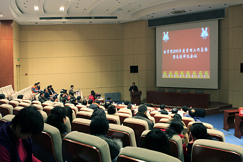 王跃飞书记首先致辞。他简单回顾了2010年研究院“国家数学与交叉科学中心挂牌成立”,“新科研综合大楼正式开工、”“华罗庚百年诞辰系列纪念活动”、“永利通过国家军工保密资格审查认证”等亮点工作。他强调,这些成就的取得是全院广大职工共同努力的结果。他说,随着国家“十二五”规划开始实施,中科院知识创新工程“2020”的开始启动,研究院进入了新的发展时期,这对我们的管理工作提出了更高的要求。我们要向一流管理迈进,这要求我们必须提升管理能力,加强管理意识,增强服务意识,实现科学管理。
