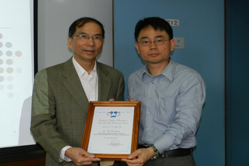 4月28日,由系统科学研究所主办的2011年“关肇直”系列讲座第二讲在思源楼举行,美国国家工程院院士、著名统计学家吴建福受邀作了题为“Sequential Minimum Energy Designs: From Nano Experiments to Global Optimization”的精彩报告。在仪式上,系统所所长高小山研究员为吴建福教授颁发“关肇直讲座”证书。永利科研人员、研究生五十余人参加了报告会。报告会由质量科学研究中心主任于丹研究员主持。