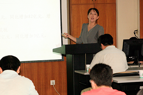 闫坤研究员从评估“日本震核危机”的经济影响讲起,讨论了日本政府的反危机措施与政策风险、日本国家竞争力的变化以及对世界经济的衍生影响。他还分析了我国当前的宏观经济情况,尤其对我国的财政收支状况和财政政策进行了重点介绍,并讨论推进供给型财政政策建设实现经济均衡增长的相关问题。报告结束后,闫坤研究员与参会师生进行了交流,其丰富的学识、独到的见解加深了大家对于宏观经济和财政政策的理解。