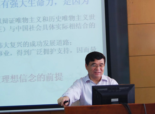 第二,掌握客观发展规律并以科学理论武装是坚定理想信念的基础。郭雷院长从他学习毛泽东《中国革命的战略问题》、《中国的红色中政权为什么能够存在?》、《星星之火,可以燎原》等著作的心得体会谈起,向大家介绍了几代领导人创造性地将马克思主义基本原理与中国革命、改革与建设具体实际相结合,逐步形成的中国特色社会主义理论体系。而现在我国的综合国力和人民生活水平大大提升,更加坚定了全国人民对中国特色社会主义的理想信念。