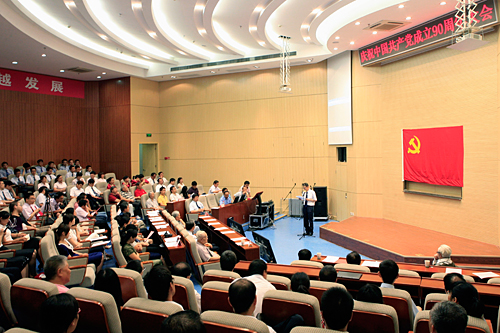 6月28日上午,庆祝中国共产党成立90周年大会暨红歌演唱会在思源楼报告厅召开。院长郭雷院士、党委书记王跃飞等院所领导,以及吴文俊、陆启铿、万哲先、陈翰馥、严加安、李邦河院士等200多位职工和党员参加了大会。大会由副院长、党委委员汪寿阳主持。