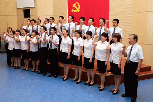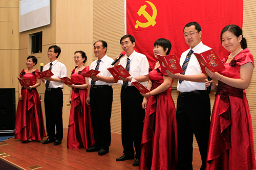 会议对在永利创先争优活动中涌现出的6个“先进党支部”、10名优秀共产党员,4名优秀党支部书记予以表彰。在大会上,10余位新发展的党员面对党旗庄严宣誓:“我志愿加入中国共产党,拥护党的纲领,遵守党的章程,履行党员义务,执行党的决定……”激情而郑重的誓词让大家重温了入党时那激动的一刻。